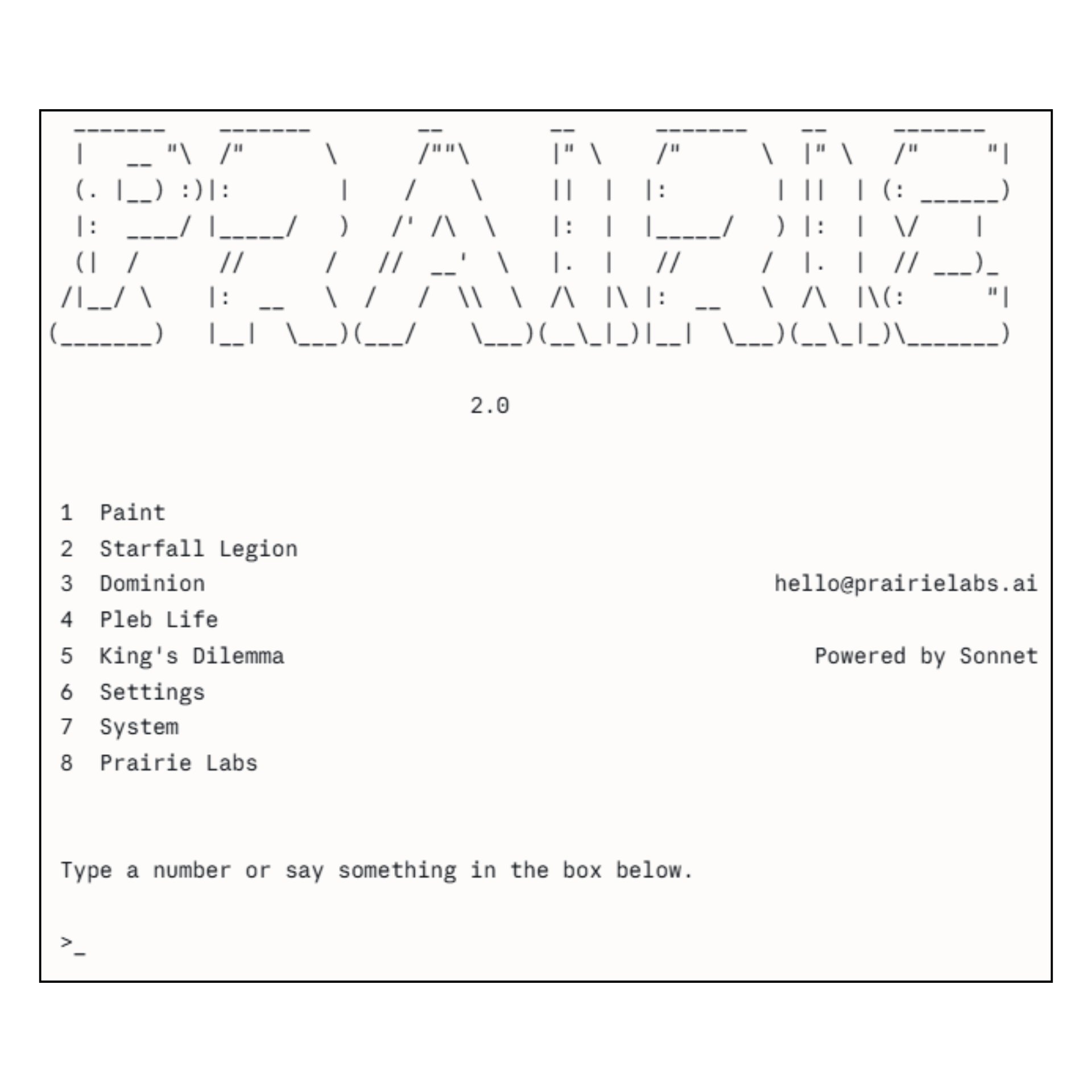 Stateful simulations built on Prairie Engine. Every decision changes the world.